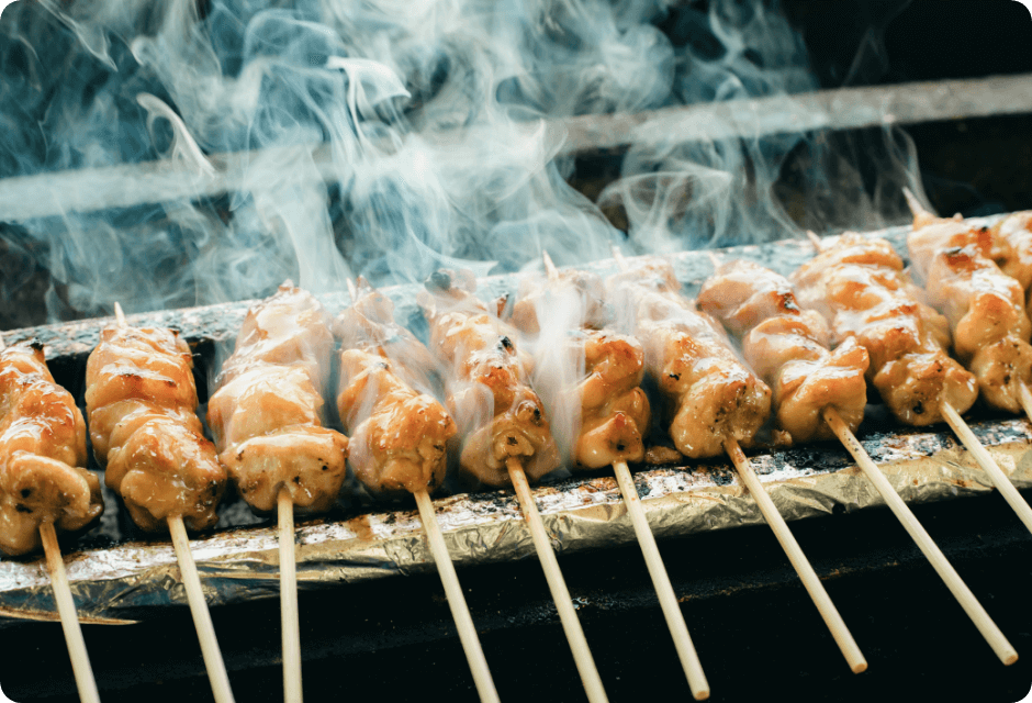 自社工場で串打ちをしていることにより10種類以上の豊富なメニューを提供できる他に、 子供から大人まで食べれるように完全自家製タレをニンニクタレと普通タレ2種類に分けて販売しております。